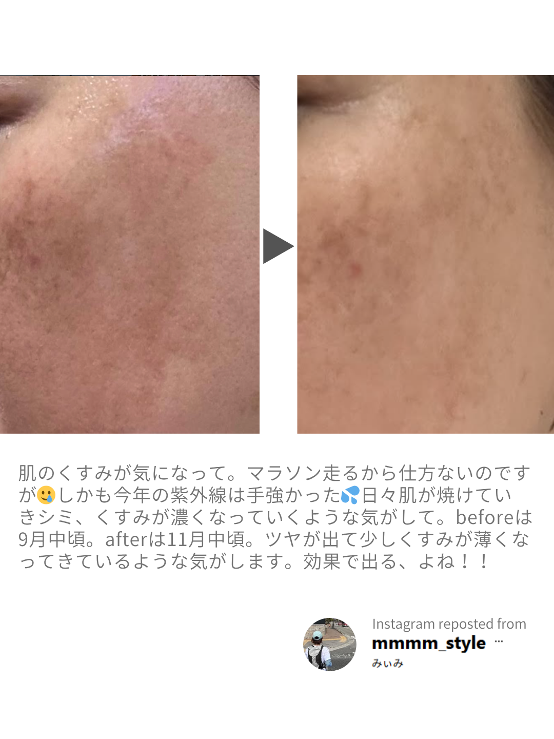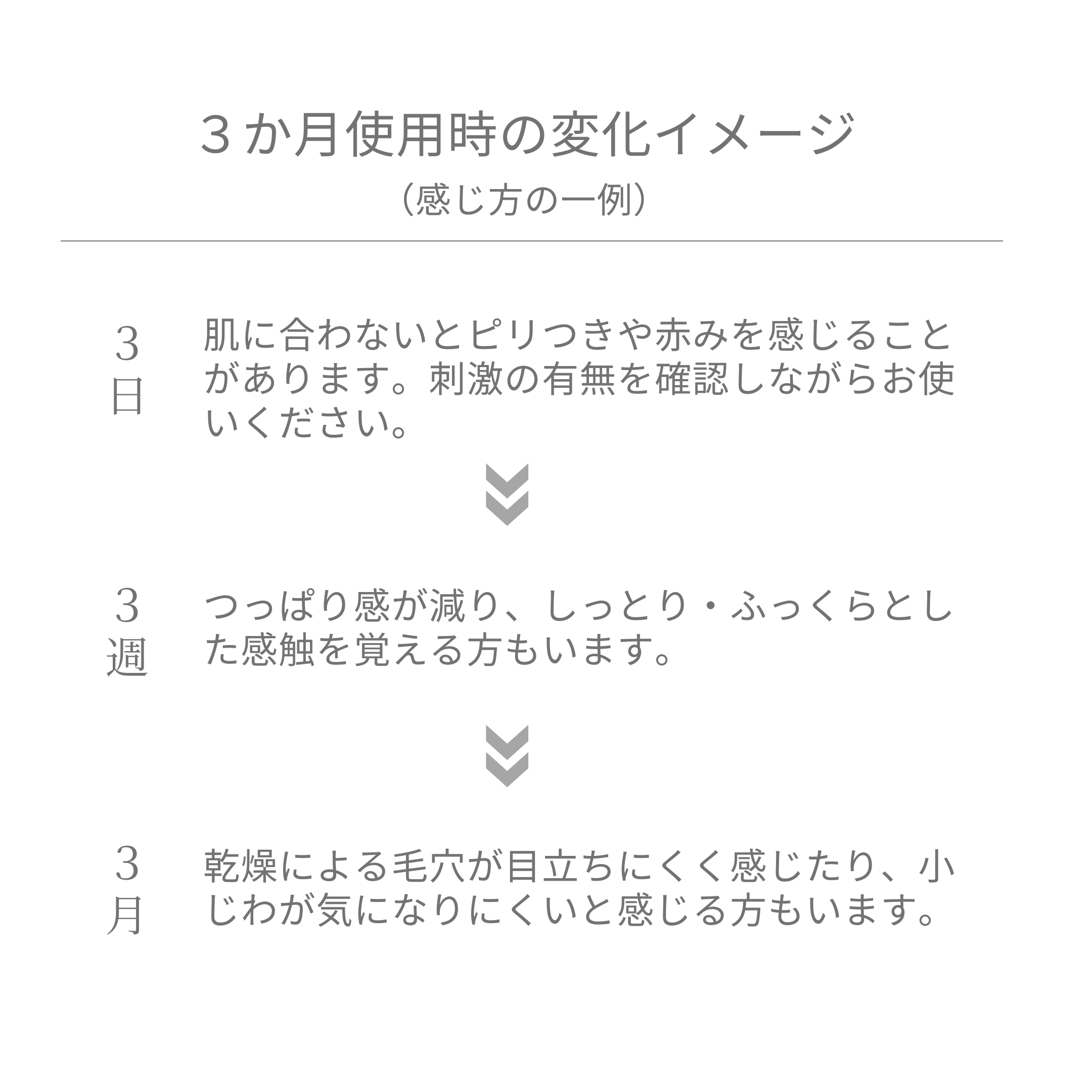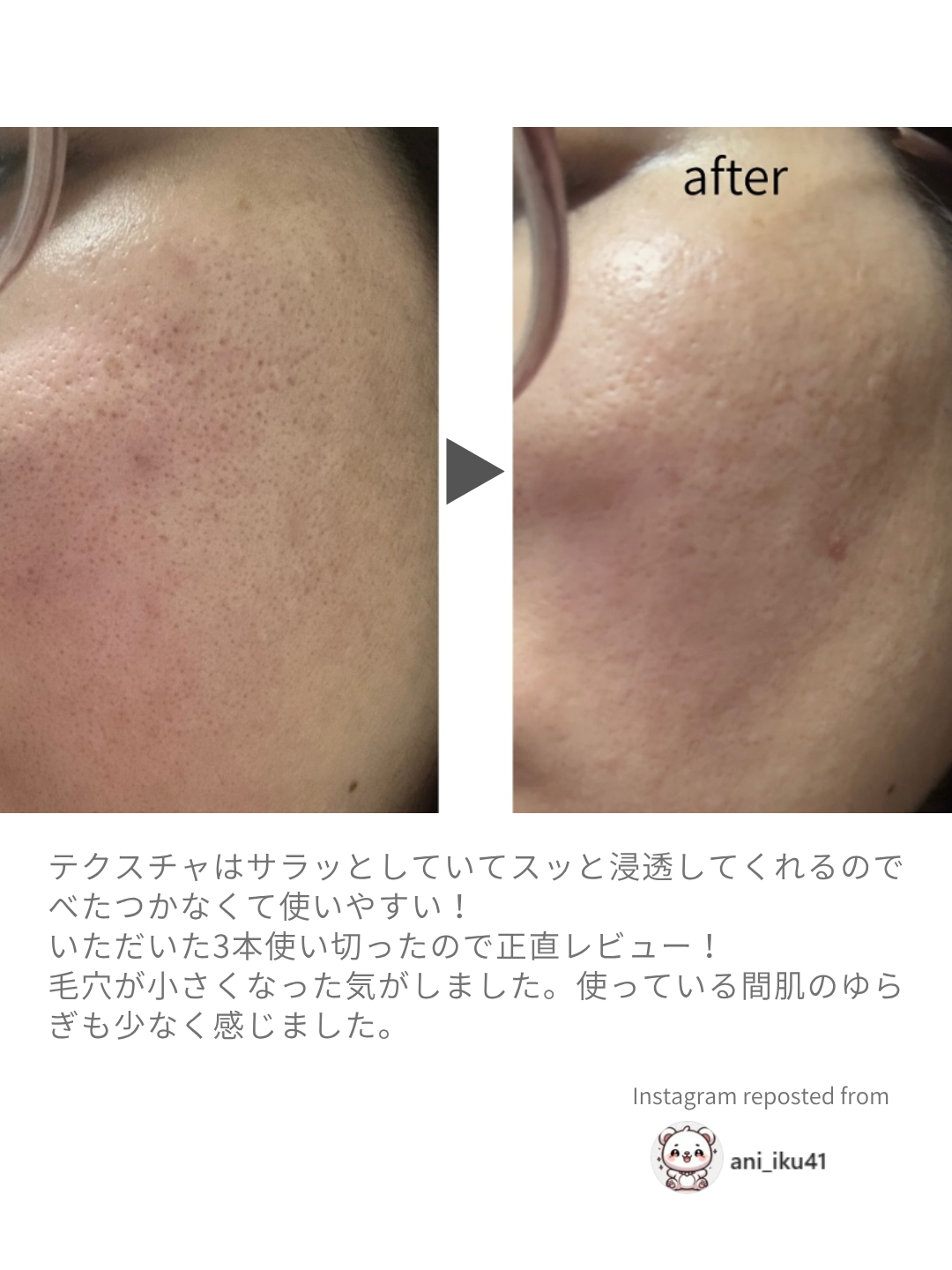 掲載している写真は、個人の使用感に基づくものであり、すべての方に同じ変化を保証するものではありません。スキンケアの効果には個人差があります。