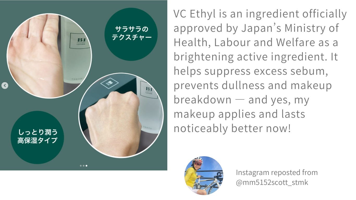 Based on these results, B1 Lotion was commercialized and contains a vitamin C derivative (5), providing moisture to the skin with daily skin care.